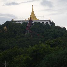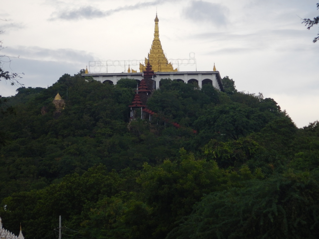 いつもならここからマンダレーヒルに登るのだが、今回はパス。下から見上げると、頂上へ至る回廊やパゴタの周囲が展望テラスになっていることがよくわかる。