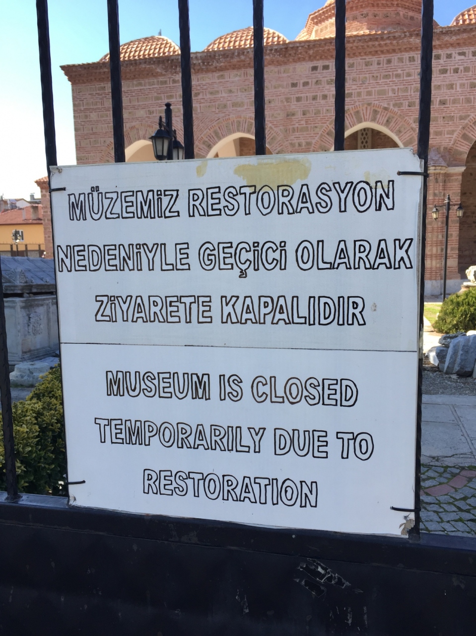 入口の案内板から、平時は9-13時&14-18時開館、料金3TLと読み取れました。