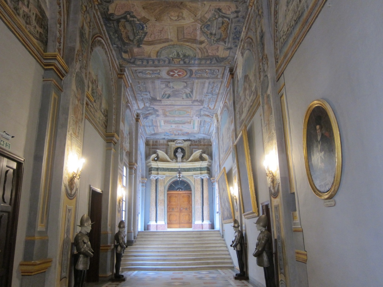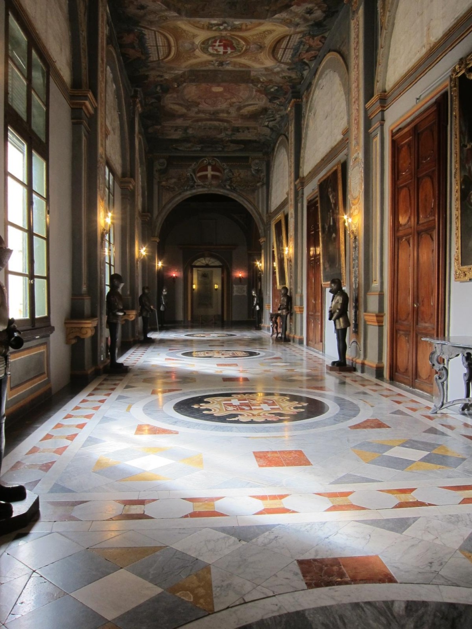 チケット売り場は、中庭から階段降りて右側の兵器庫の入り口。ここでチケット購入して、一旦、中庭?に戻って階段脇のカラスばりの階段のところから2階の宮殿に入ります。