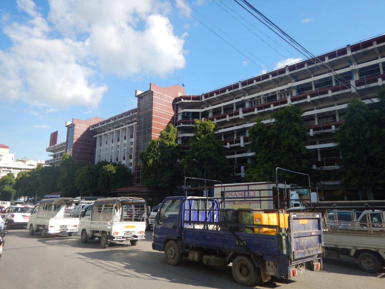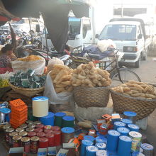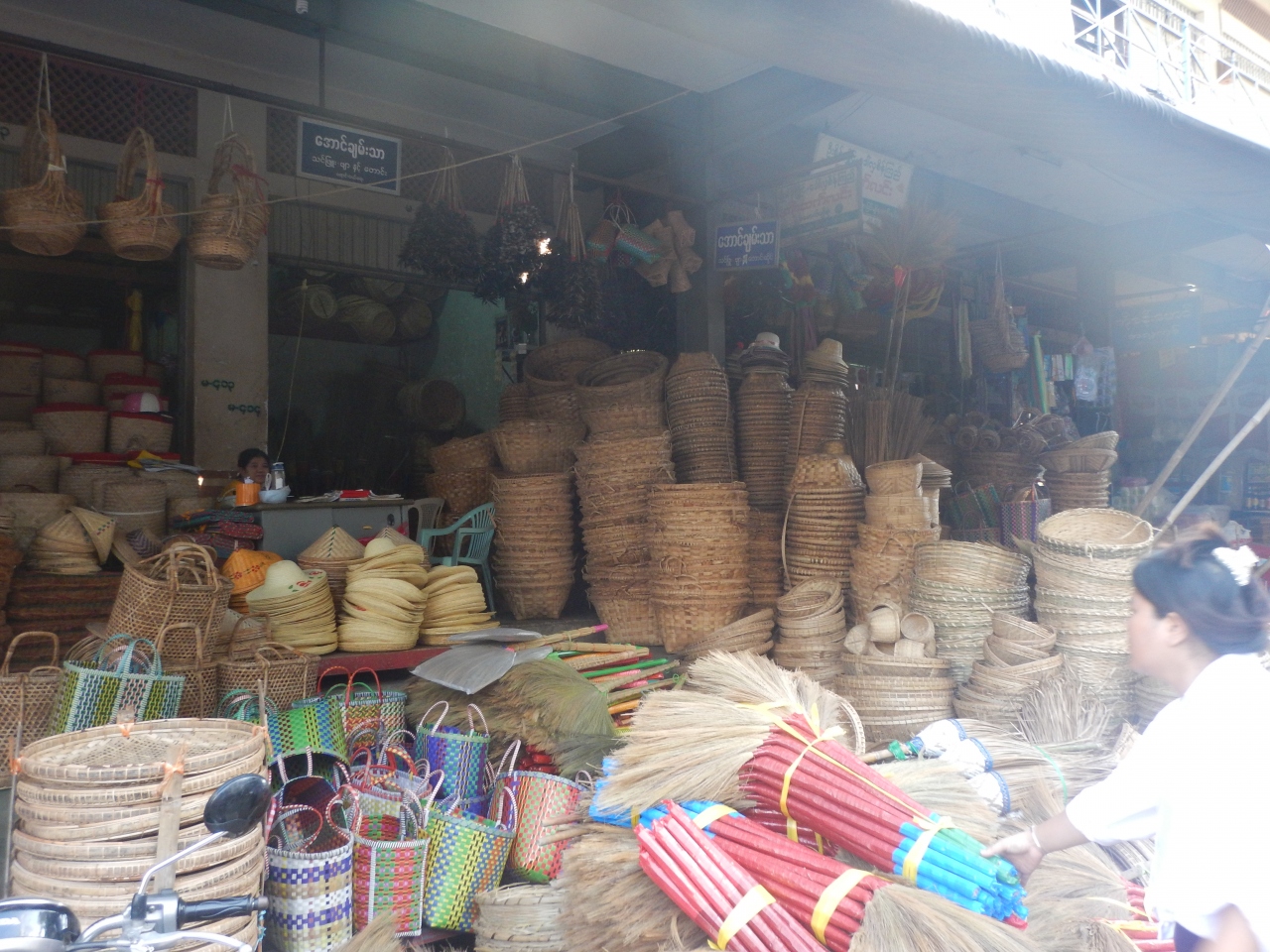 マンダレーで最大のマーケット。市場の前には時計塔が建っており、よい目印になっている。建物の中に入るよりも、周囲で売られている生鮮食料品やヘチマや竹かご、竹ざるなどの工芸品を見るのが楽しい。以前にネズミ捕りや竹製の買い物かごを買ったことがある。