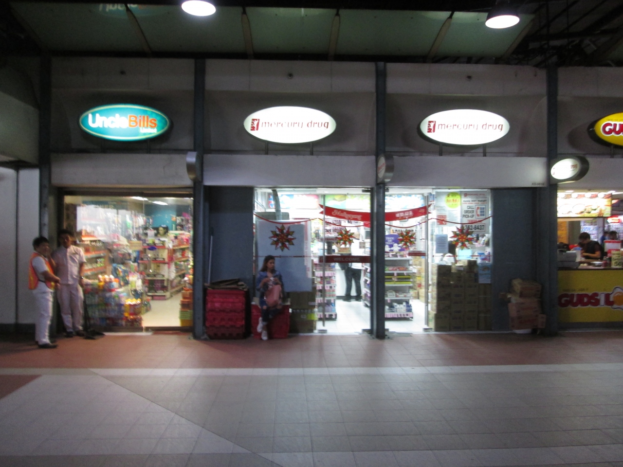 アヤラ駅構内にはファーストフード店、コンビニ、売店が並んでおり、薬局なども見かけ充実していました。改札口内にはスタンド式のショップはないのがマニラでしたし、自動販売機がないので、ドリンク、軽食、ガムなどはこちらで購入することになりました。