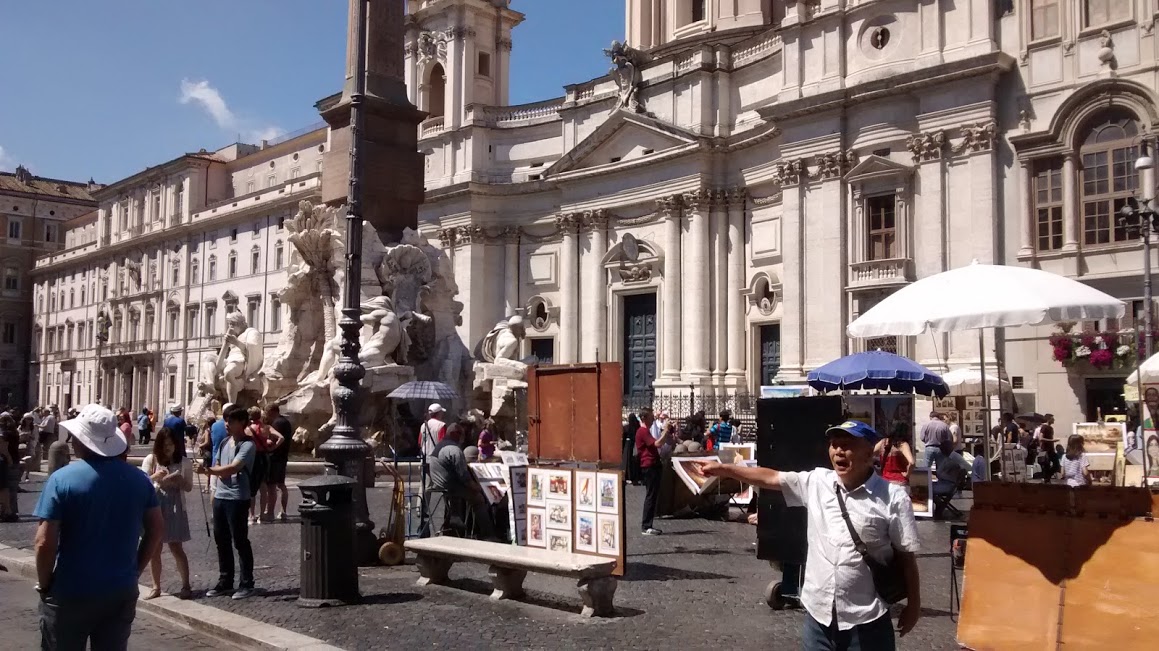 四大河の噴水は、ナヴォーナ広場にある3つの噴水のうちで、中央にある噴水で、噴水の中央には立派なオベリスクが立っています。観光客も滅茶苦茶多く、たいへん凝った噴水の彫刻・装飾が見物ですので、鑑賞する時間をとってください。