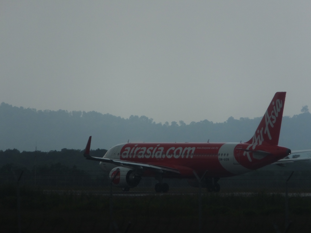 30分くらい走った所で私の目に飛び込んできたのは、なんと!エアアジアの機体。