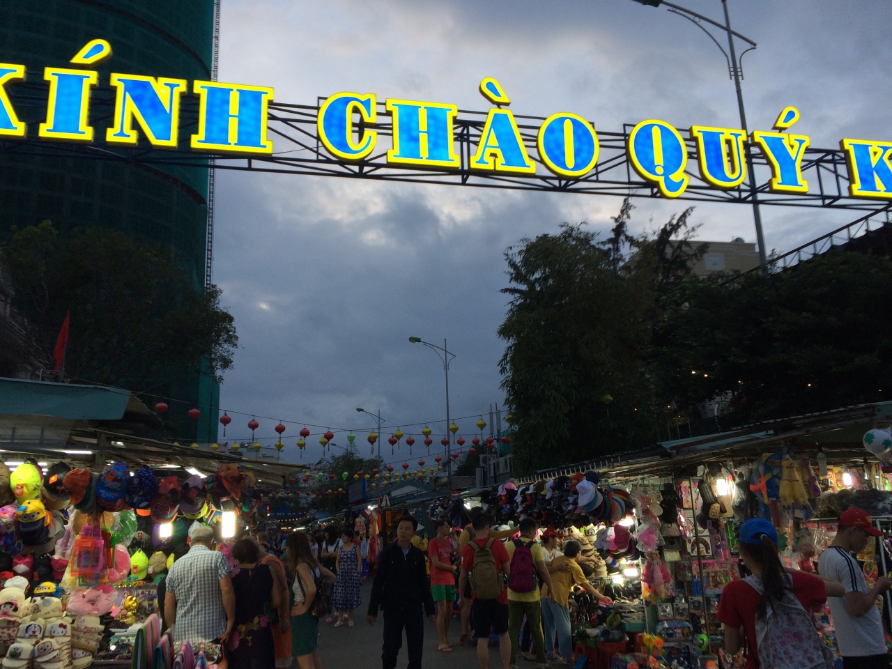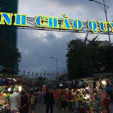 TRAN PHU 通り、カルチャーセンターの横を100m程の所に露店が並んでいました。ホテルで薦められたので見てきました。果物、お菓子、衣料品、土産品などこれと言って特徴ある店は無かったですが、夕方5時を過ぎると人が集まってきました。特に果物店は盛況で、ロシア人が群がっていました。