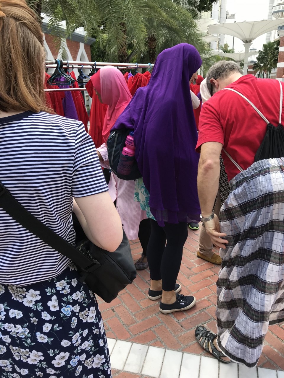 女性は、入口で貸してくれるスカーフやローブを着用しなければなりませんでした。