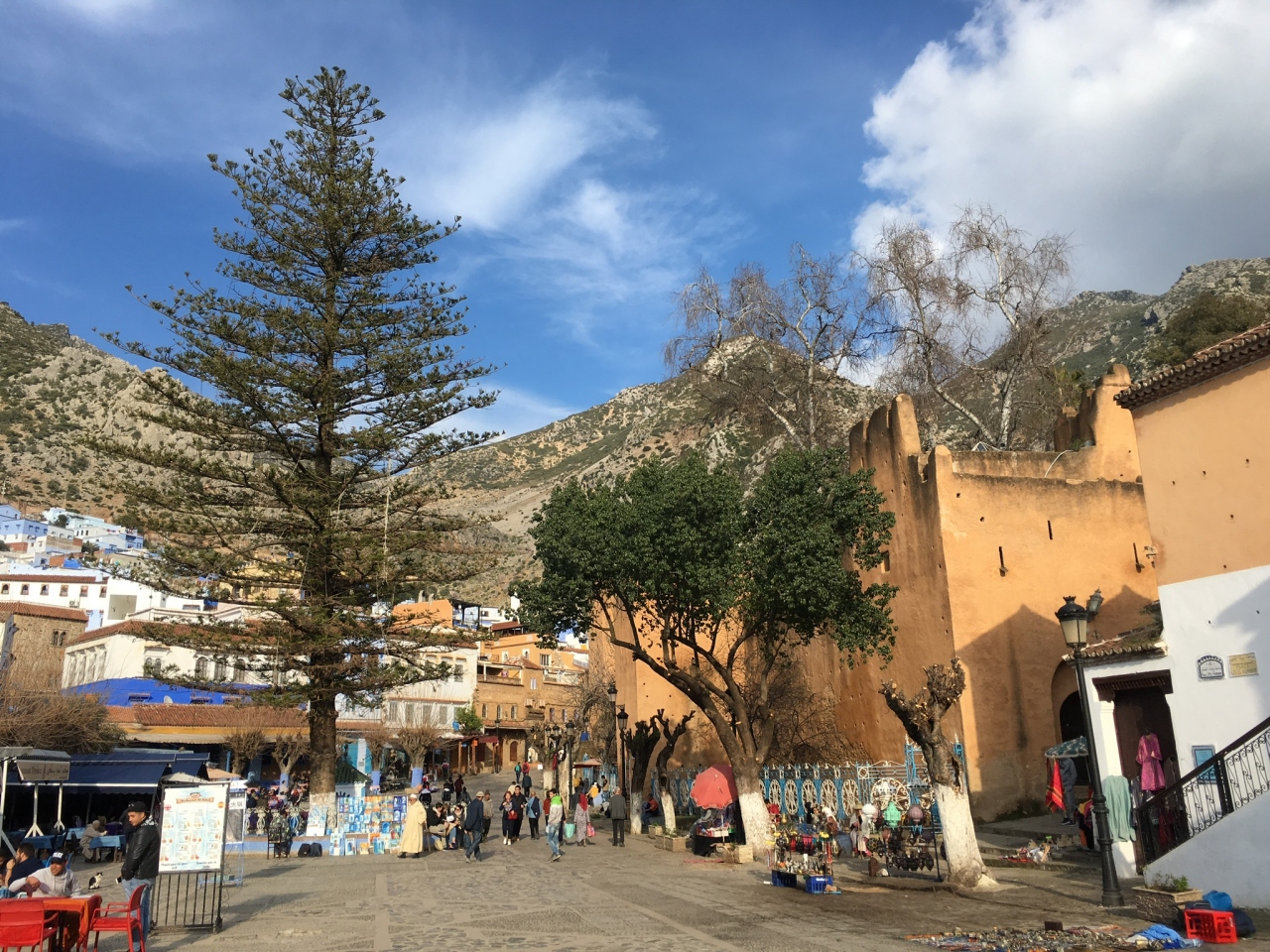 迷宮のような青い町シャウエン。この広場と、隣接するカスバ、モスクを基点にして移動しました。広場には、屋上テラス付きのレストランがいくつかあり、食事しながら、青い町の眺望を味わうという贅沢な時間が過ごせます。