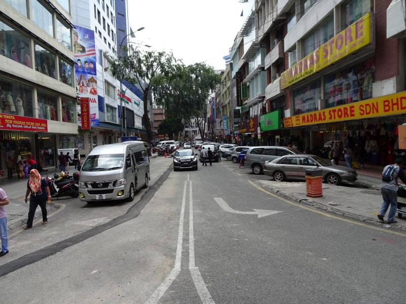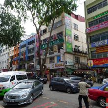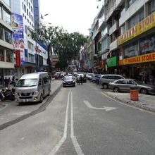 テキスタイルの店が多く ローカルの店が多く並ぶ通り。通りには大きなインドの音楽が流れています。