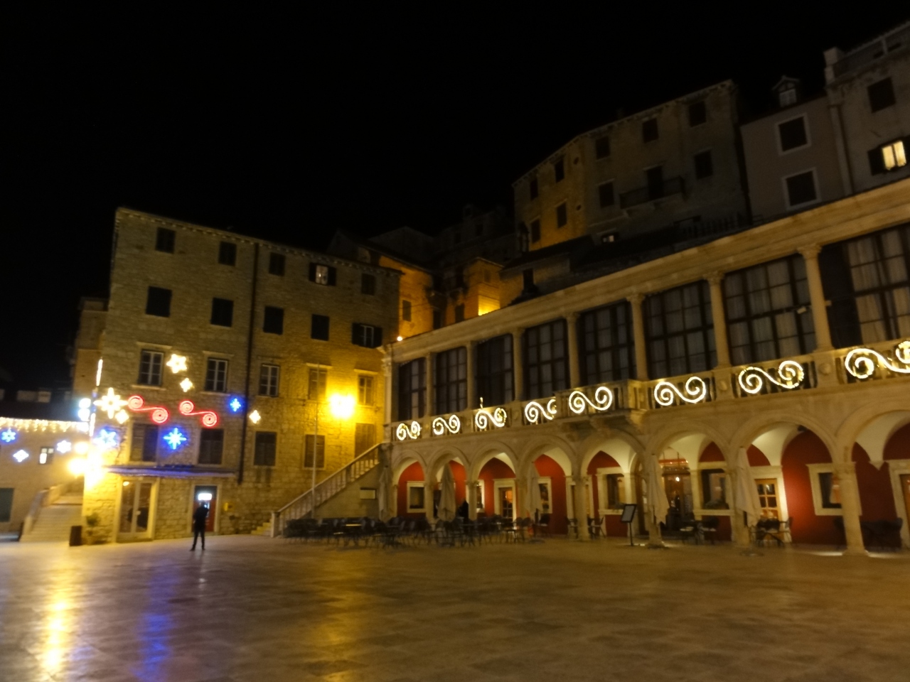 聖ヤコブ大聖堂の裏手、レプブリカ広場に面した美しい建物がシベニクの市庁舎。1階の連なったアーチと2階のバルコニーがきれい。特に夜は素敵。1階はレストランのようで、人はいませんでしたが外にテーブルもありました。
