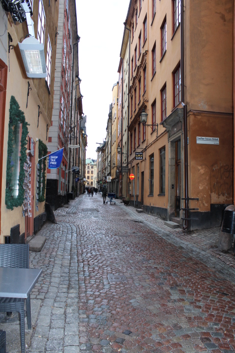 Österlånggatanを見下ろせるようになっていて、石畳の坂道が良い雰囲気を醸し出している。