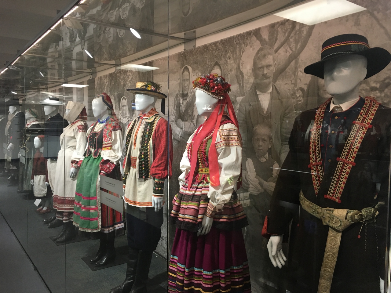 またこの博物館の最奥部にある民族衣装こーなは圧巻!ポーランド各地のみならず、近隣諸国の民族衣装も網羅されていて素晴らしいです。手の込んだ刺繍や装飾は眼福のひと言。