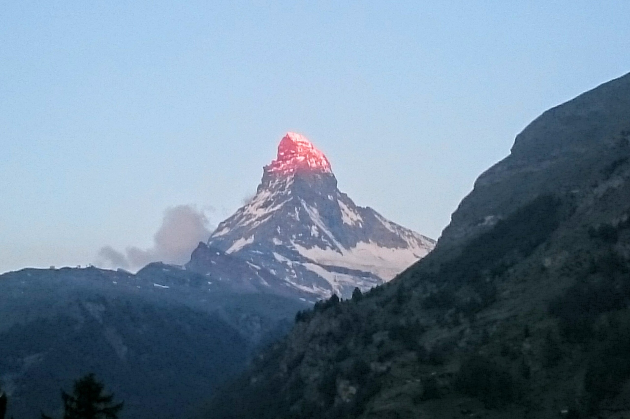 ツェルマットに2泊の予定で訪れ、1泊目の朝に「朝焼けのマッターホルン」をホテルから見ることができました。