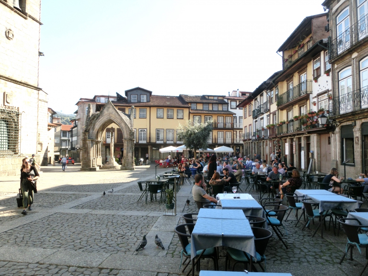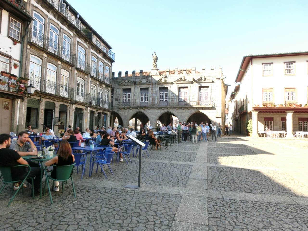 今も実を付けているオリーブの古木のあるOliveira広場が、ギマランイス歴史地区の中心広場です。オリーブの木の隣には、ポルトガル・カスティーリャ王国連合軍がムーアの軍隊に勝利したサラードの戦いを記念するゴシックのアーチがあります。