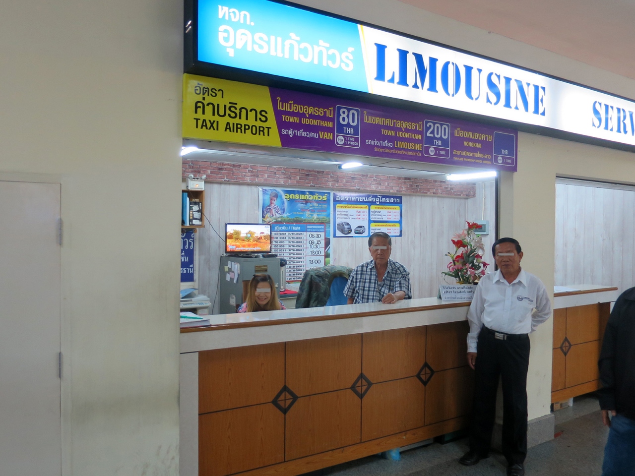 年末、バンコクからルーイまでの航空運賃が高いと感じたため、ウドンタニーからバスでルーイまで向かうことにしました。空港に到着して荷物を受け取り、制限区域外に出たすぐ目の前にロット・トゥーとタクシーのカウンターがあるので楽チンです。
