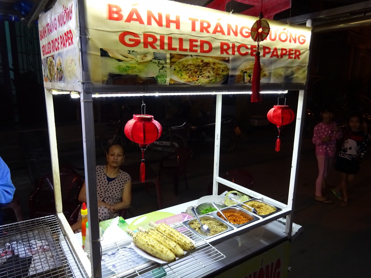 アンホイ橋を新市街側に渡ってすぐです。ベトナムグルメの屋台が多数出ているので、リーズナブルにいろいろ楽しめます。雑貨の屋台も出ているので、お土産探しにもGood。ランタンの出店には様々な色のランタンが並んでおり綺麗でした。