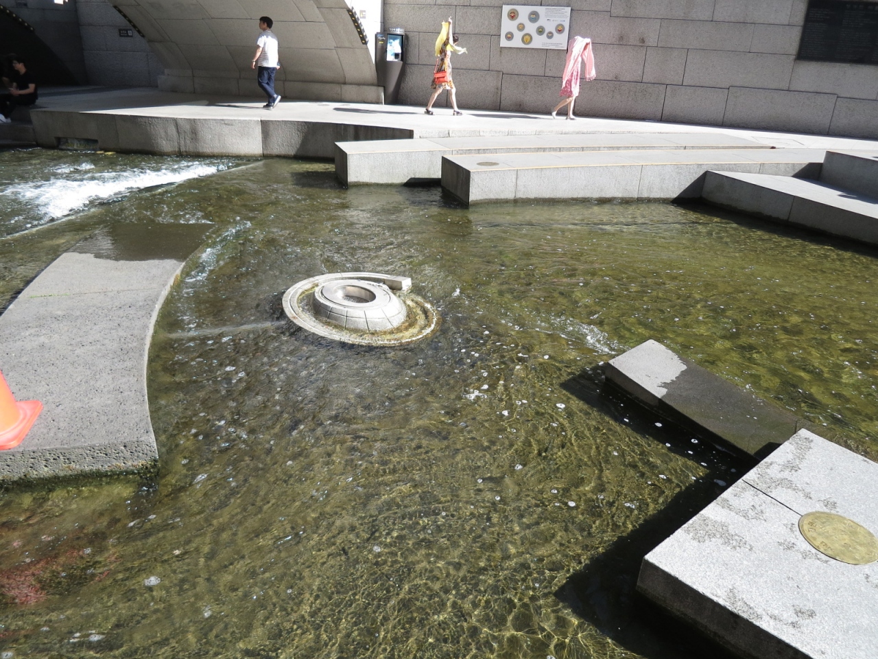 光化門の近くから流れる人工的な河川のようですが,両岸が公園のように整備されてとても綺麗です。