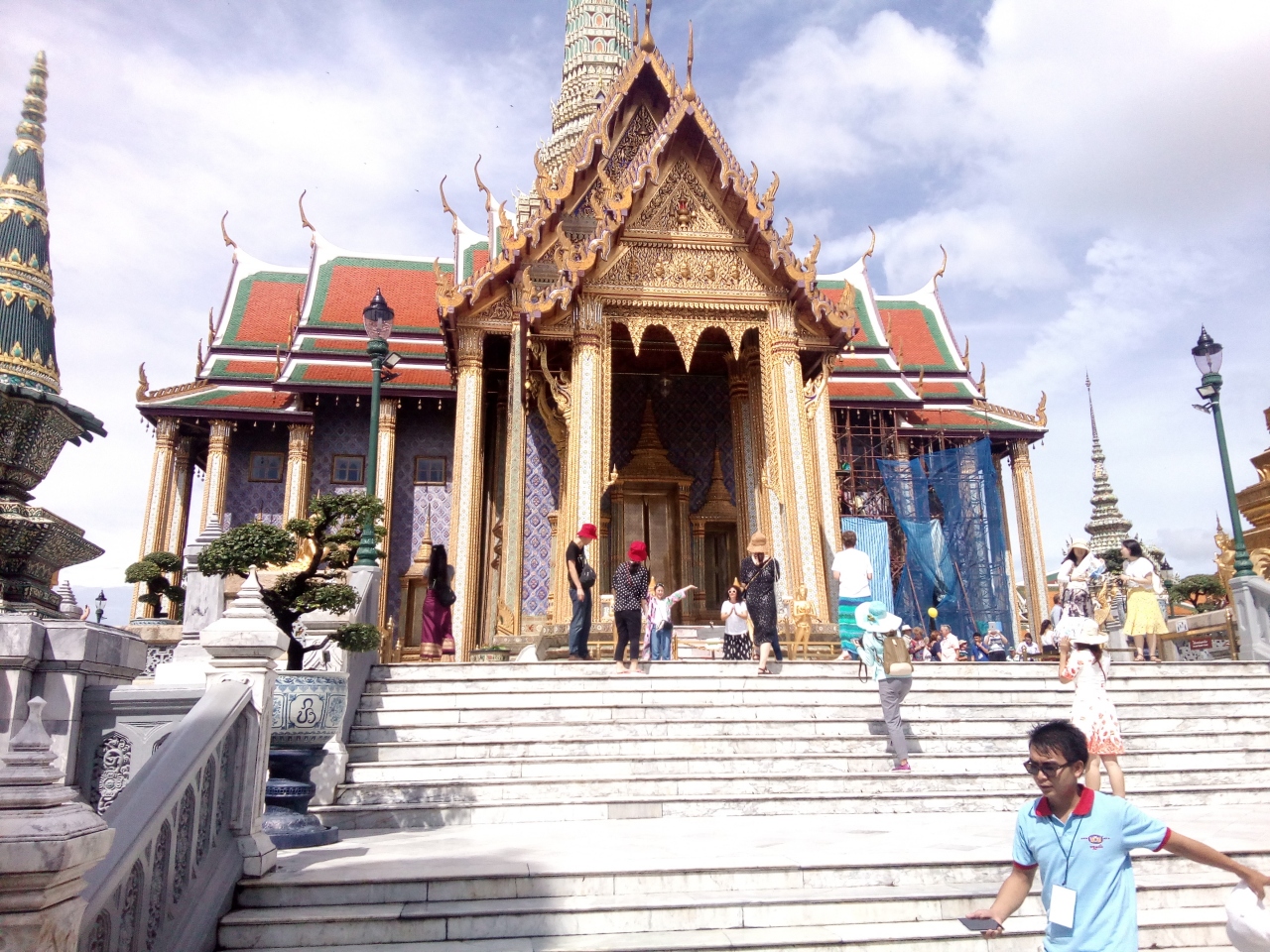 バンコク三大寺の一つということで、ナナから歩いて行きました。半日ほど歩き、たどり着きました。観光客でごった返していましたが、いろいろな展示物の前で写真を撮ることができました。ほかのお寺と同じように、ショートパンツの場合は、足を隠すスカートが必要です。借りることができます。