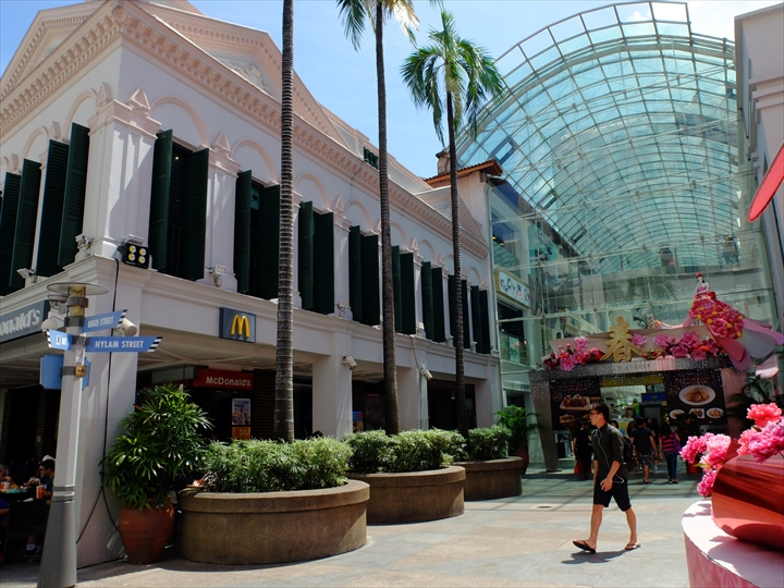 天井がガラス張りで明るく、プラナカン様式で造られた可愛い色どりのお店が並んでいて、通り抜けるだけでも楽しめます。