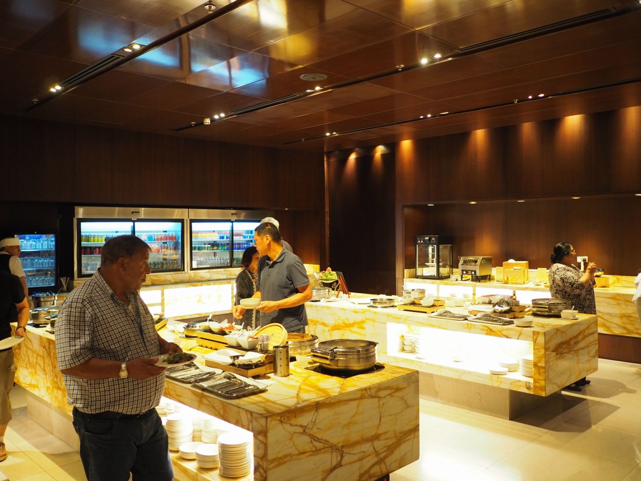 深夜便の利用だったので空いているのかと思っていましたが、超が付くほど混んでいました。妻と二人で座れる席を探すのに広いラウンジ内を歩き回りました。料理はアジアンテイストで食指が動く物が少なく、少し残念でした。空いた食器を片づけてくれるサービスマンが居てくれるのでありがたいです。
