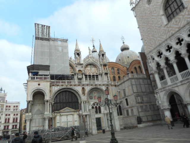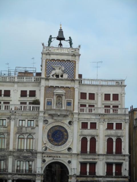 サンマルコ広場に建つ”時計塔”は、装飾が凝った建物で、二人のムーア人が時を知らせる、これも又、サンマルコ広場のランドマークです。時を知らせる時間になると、多くの観光客が”時計塔”を見上げていましたし、青いタイル張りが印象に残りました。