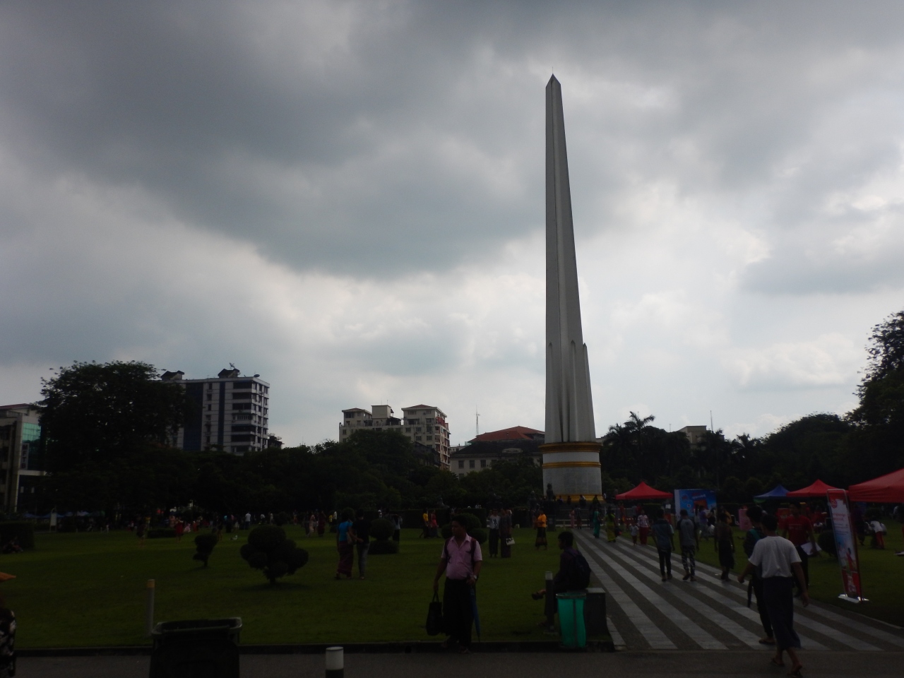 スーレーパゴタパゴタに近いマハバンドゥーラ公園の中にひときわ高い記念塔が建っている。これイはギリスから独立したことを記念して建てられたものだ。塔の周囲は芝生になており、午後のひと時を楽しむ市民でいっぱいだった。私もヤンゴン市内を大分歩いたので、公園内でしばし休憩をした。