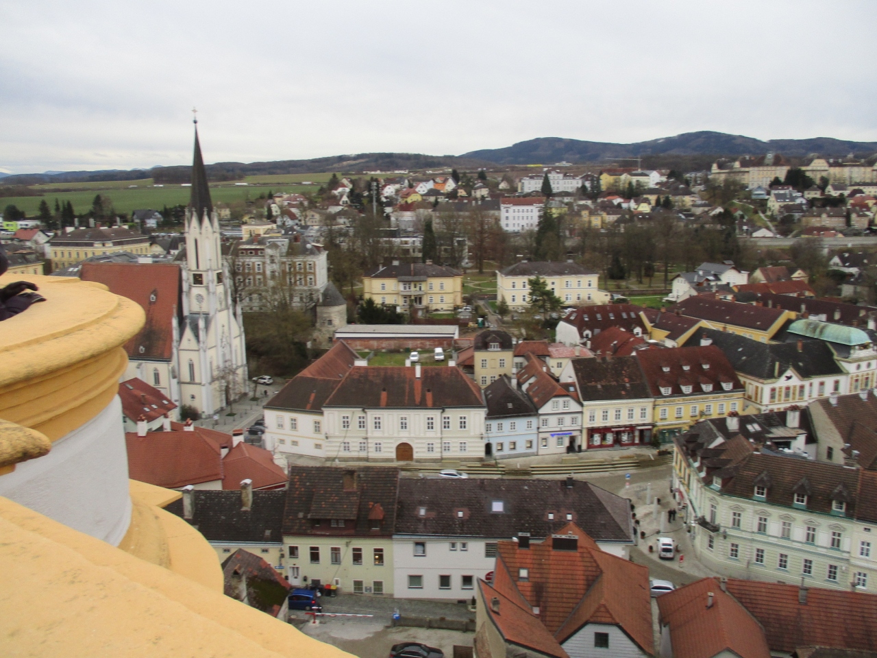 そこからハウプト通りを通ってクリスマスマーケットが開催されていたハウプト広場から教区教会の横を通って右手に曲がるとバーンホフ通りで、メルク駅へ通じている通りです。