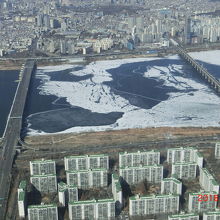 漢江に架かる橋。鉄橋上の車窓からの景色がいい。