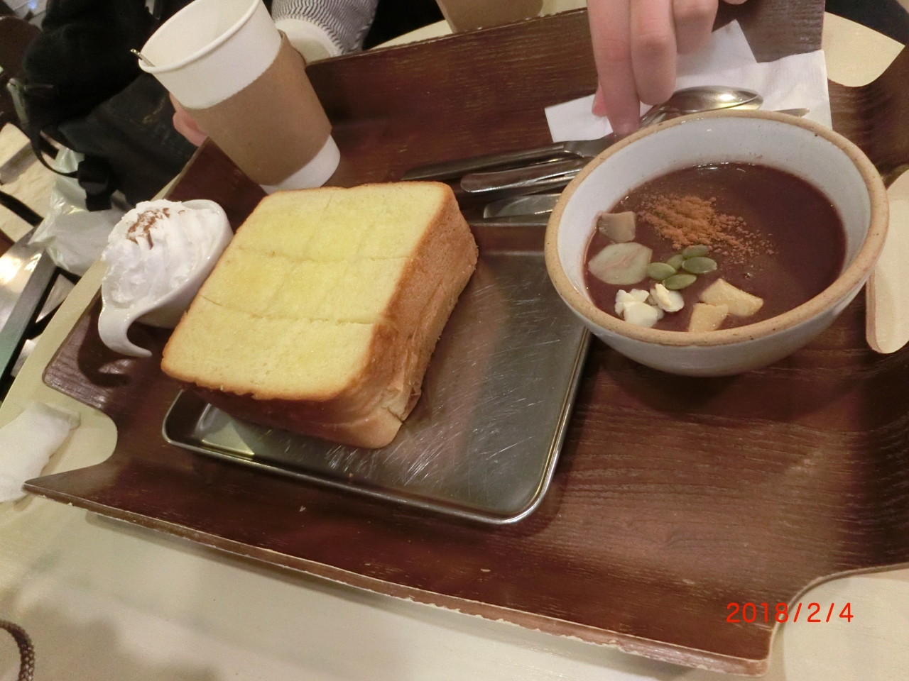 メニュを見ると善哉があり温かいというのでそれにした。