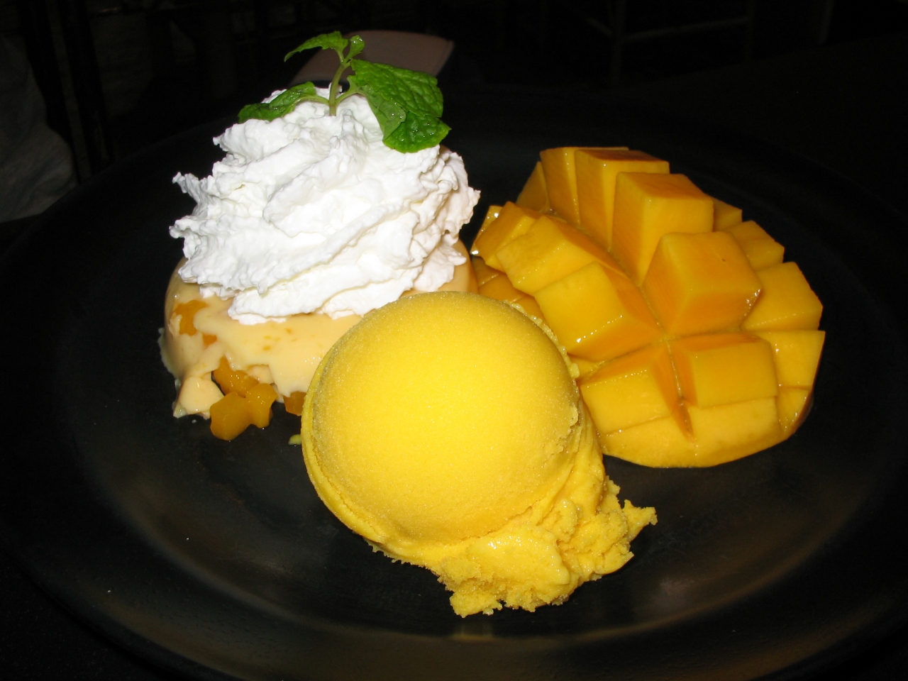 サヤーム駅からほど近く、巨大なマンゴーの人形が目印ですぐに分かりました。ラッキーだったのか、すぐに席に通され中も比較的空いていました。お目当てはマンゴーセット165B。プリン、アイスクリーム、マンゴーのセットで美味しくいただきました。