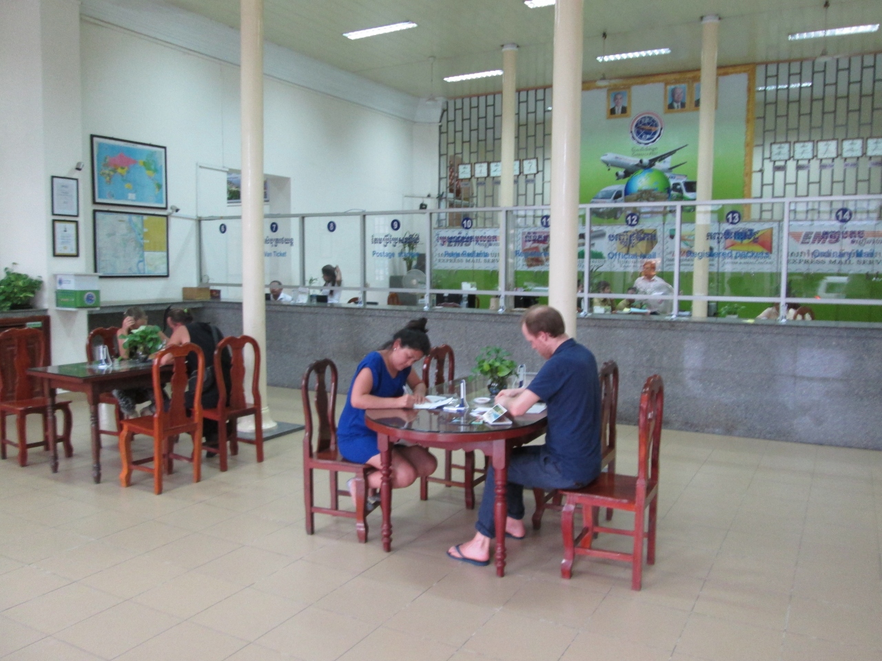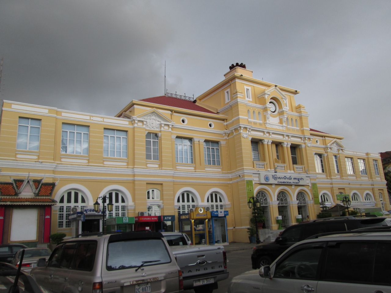 首都にある郵便局だけに立派な建物でひと目見た印象、大きいと感じました。重厚な雰囲気で、歴史の重みを感じました。フランス植民地時代に建てられたコロニアル様式の黄色い外観でした。年中無休で、自由に中に入ることができました。カンボジアの珍しい記念切手も買えるようでした。