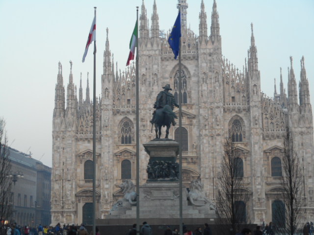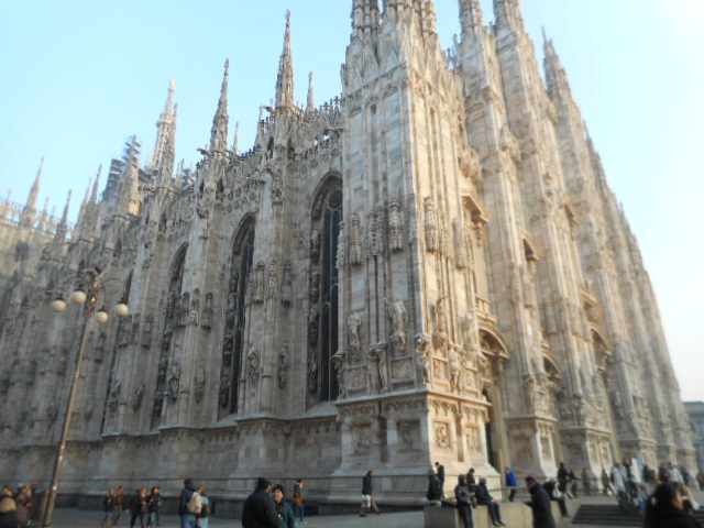 ミラノへ来たら、”ミラノ大聖堂”見学は外せません。外観はレース編みのような装飾で繊細で素晴らしい建物で、内堂はステンドグラスが見事で歴史を感じます。内外からの多くの観光客が聖堂前の広場で大聖堂の写真撮影に興じています。鳩も多いし、土産物を売る人達も多く、ピックポケットに要、注意の場所です。