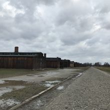 こちらの収容所はアウシュビッツのような赤レンガ造りではなく板張りのバラック。粗末な建物がズラリと並んで建てられています。