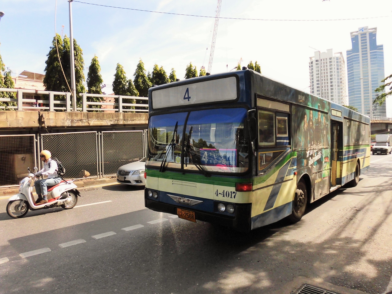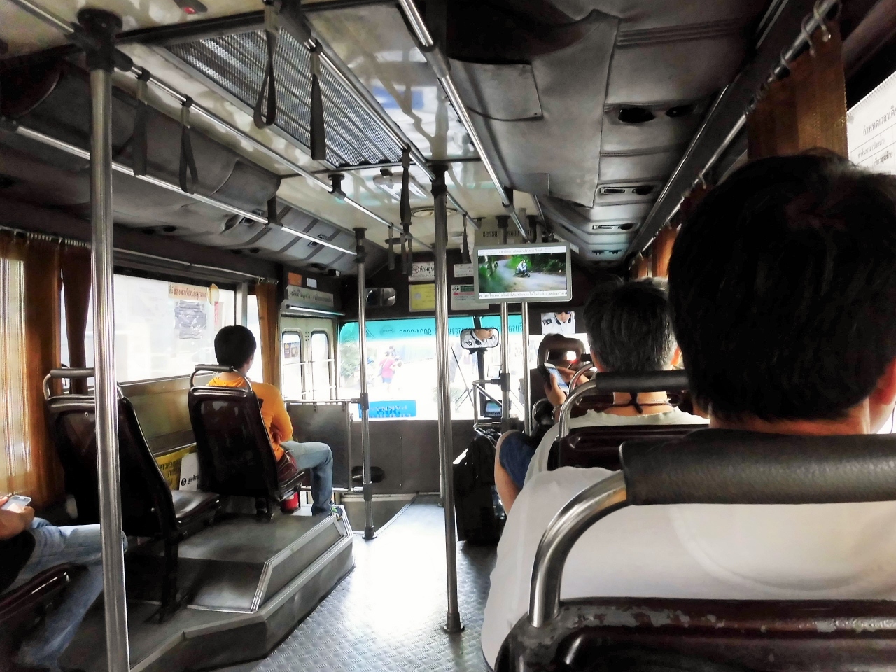 バンコク市内の移動は、BTS(スカイトレイン)、MRT(地下鉄)が中心ですが、鉄道がない場所へはバスも安くて有効な手段です。ただ、バスの路線が約200系統あり、バスの種類もいろいろありますので、まずは「『バンコクバス路線図』を日系の本屋さんで購入しましょう。エアコンなしの赤バスや白バスは均一料金ですので降りるバス停名を言わなくて済み気軽に乗れます。ただし、次のバス停名の案内が一切ありませんので、自分で景色と地図を見て、自分で降りるバス停が近づいたらブザーを押して降ります。