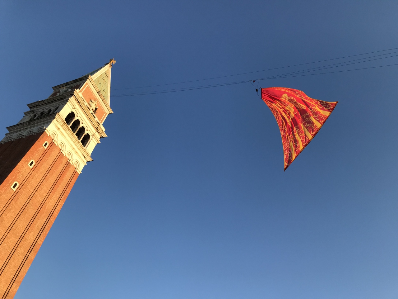 最終日、17時になると、ヴェネツィアの旗が鐘楼に向かって上がっていくところを見ることができます。みんなが旗に注目し盛り上がる感じでした。