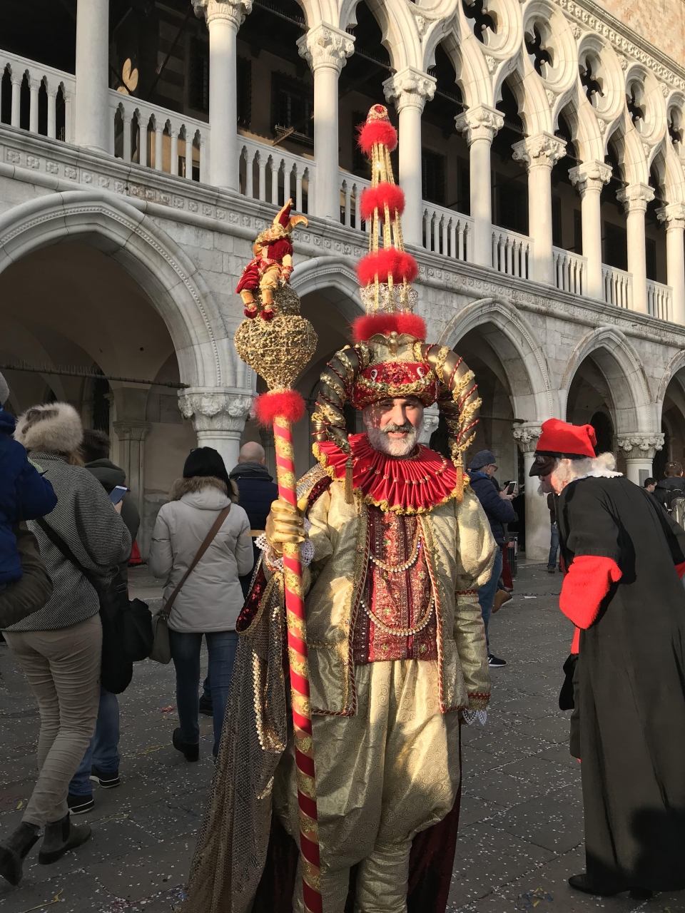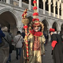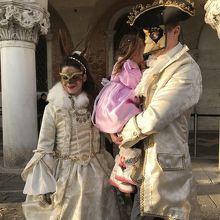 サンマルコ広場に行くと、仮面をつけて中世の貴族の恰好をした人がポーズをとっています。誰にカメラを向けても、オッケーという感じで、カメラに収まってくれます。私たちも一緒に写してもらうこともできました。