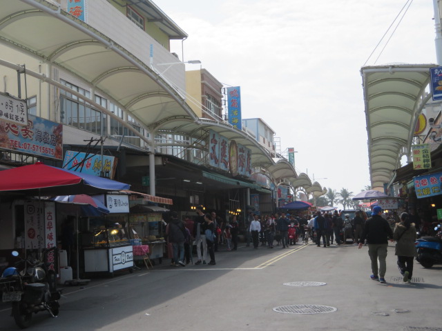 旗津半島のメインストリートで、旗津フェリー旗津輪渡站を下船するとすぐ廟前路に入ります、通り沿いにはシーフード中心の飲食店、お土産屋と海鮮料理の大きな食堂があります、呼び込みもあり活気があります、前回来た時は海鮮料理を食べましたが今回は一人なので見るだけでした、道沿いには海の神様瑪祖を祀る天后宮もあります。