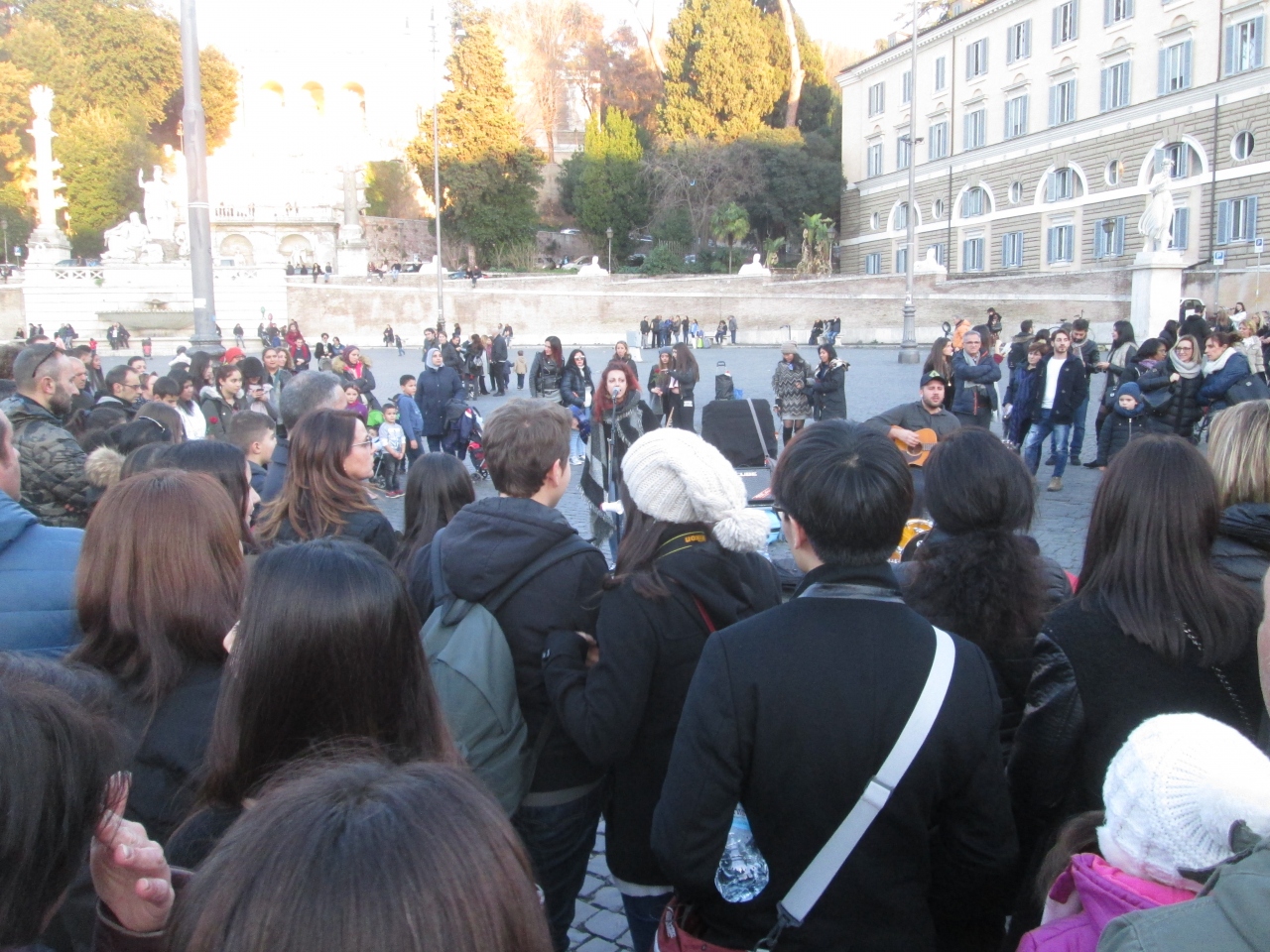 ポポロ広場では路上ライブが開催されて、イタリア人たちは足を止めて見学していました。アマチュアミュージシャンのパフォーマンス会場になっているようでした。おそらく、ニセモノだと思いますが、驚くほどそっくりなマイケルジャクソンを見かけ、意外に上手いパフォーマンスを行っており、広場がノリノリな感じで盛り上がっていました。