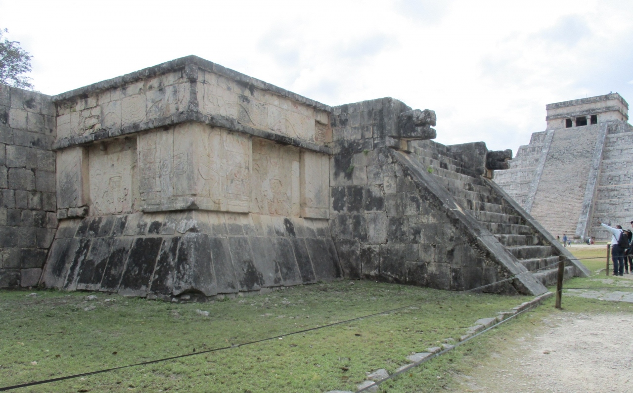 エル・カスティージョの近くにある鷲とジャガーの神殿(台座)には、壁面にジャガーと鷲が人間の心臓を食べる様子が描かれています。
