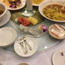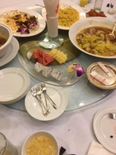 今回は北京ダック、白菜の醤油煮、チャーハン、春巻、スープ、フルーツにスイカ、ドラゴンフルーツ、パイナップルなど。