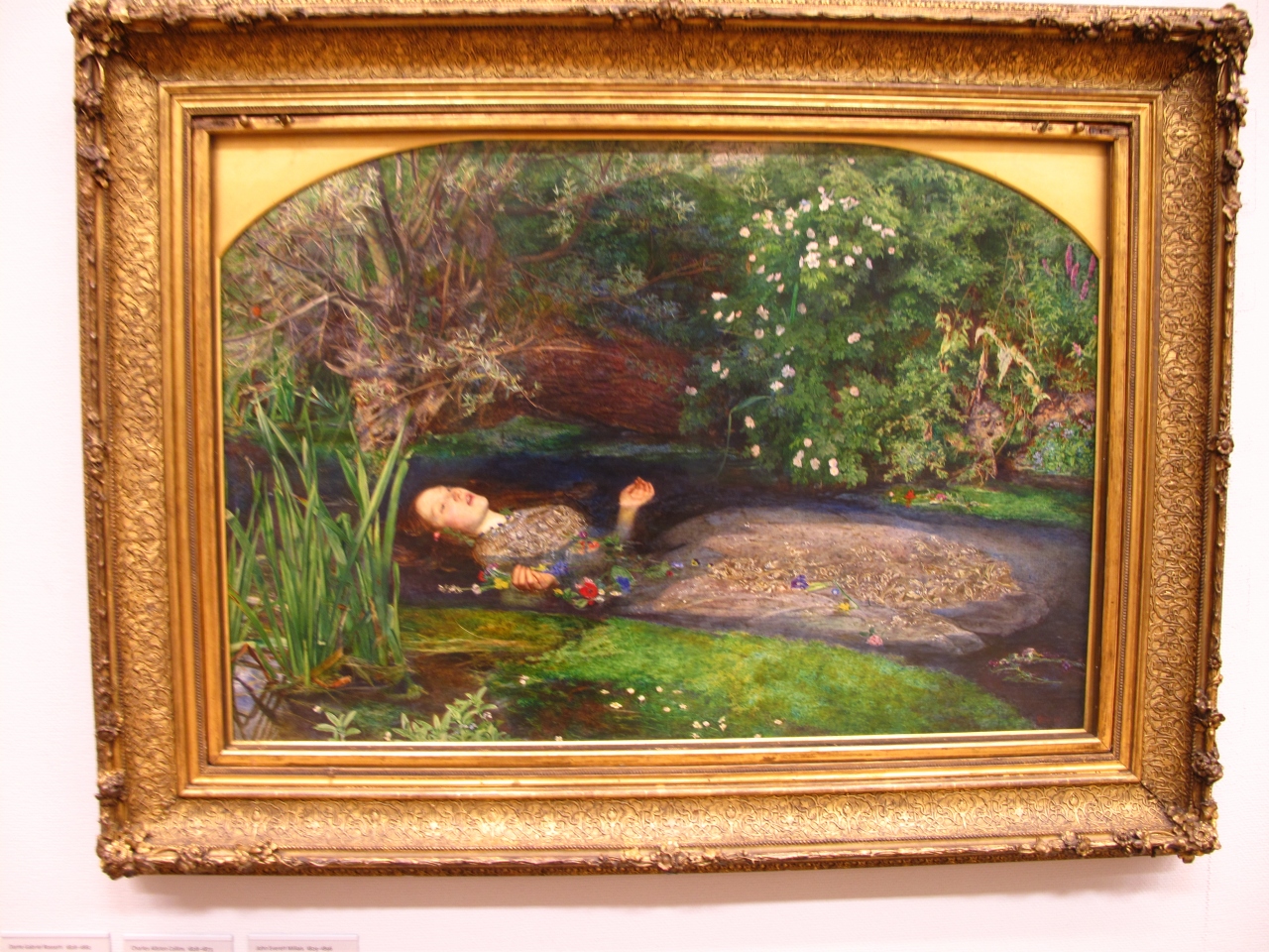 小ぶりな作品は壁一面にレイアウトしてあります。それはそれで見事なのですが、鑑賞しづらくて困りました。一番見たかった「オフィーリア」は一番下の見安い位置にあって安心しました。