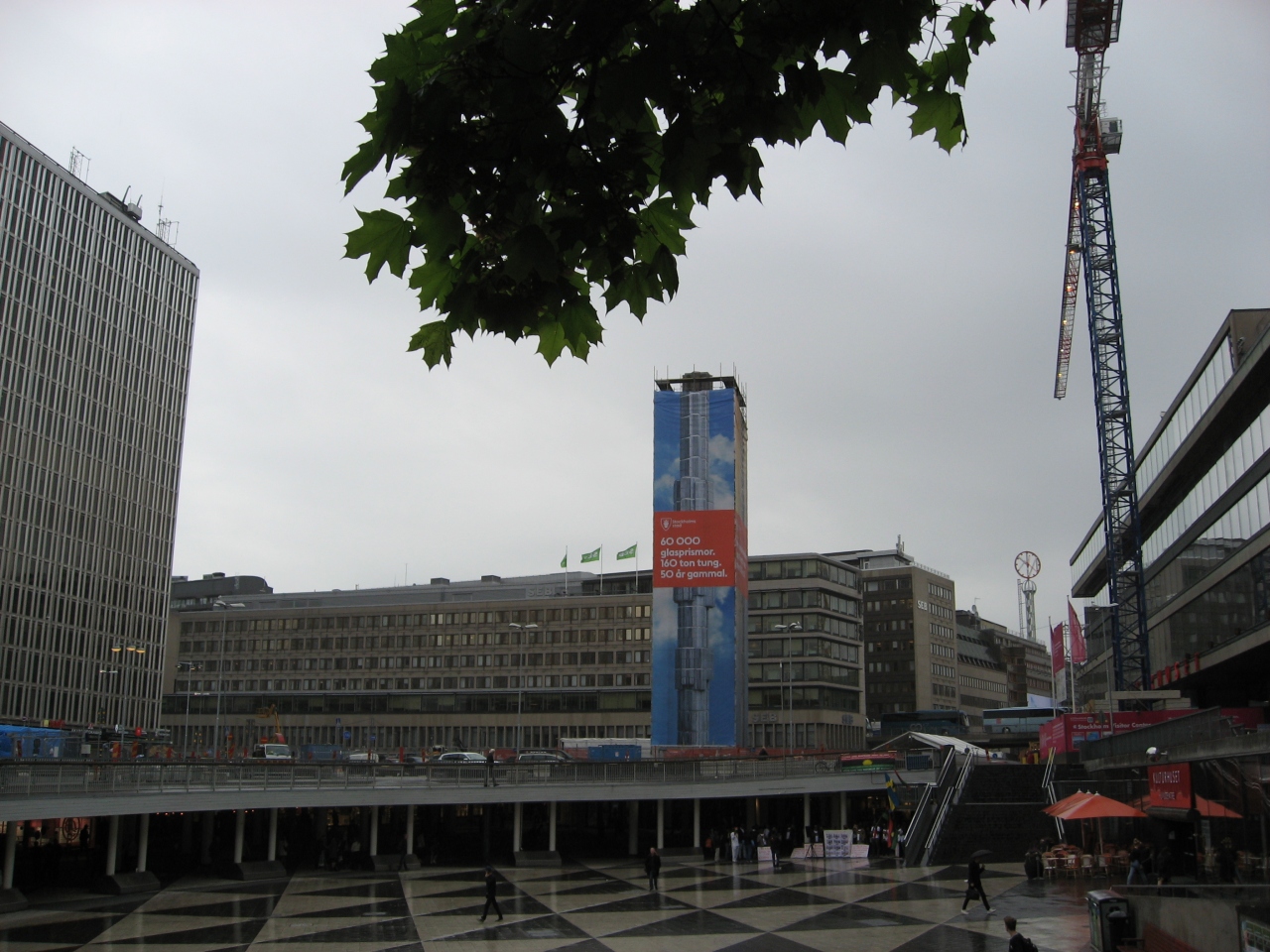 ストックホルム中心にあるのがセルゲイ広場です。床は白と黒のタイルがモザイクになっていて洒落た感じです。
