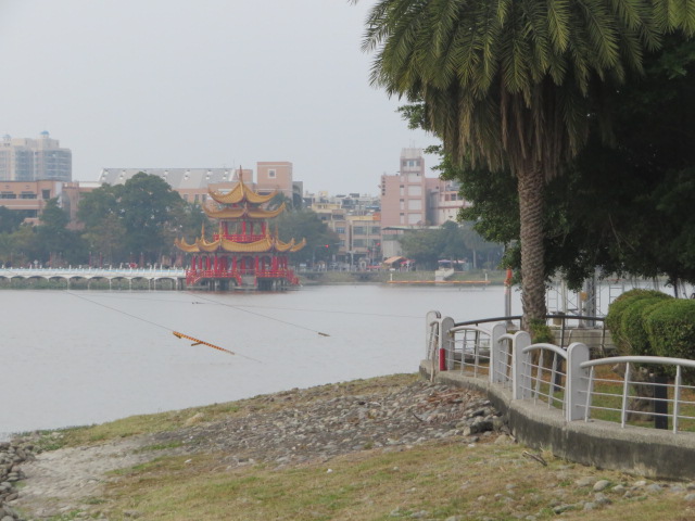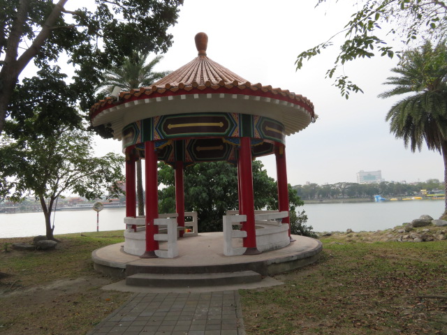 蓮池潭の周りには整備された遊歩道があり散策に適しています、池沿いを周囲に見える台湾らしい寺院や塔を眺めながら歩くことが出来ます、適当に休憩が出来るベンチや東屋ありますので便利です、今回は南東側の風景区のアーチ・門がある付近から北側高雄孔廟付近までの東岸沿いを歩きました、途中にある清水寺にも寄りました、。