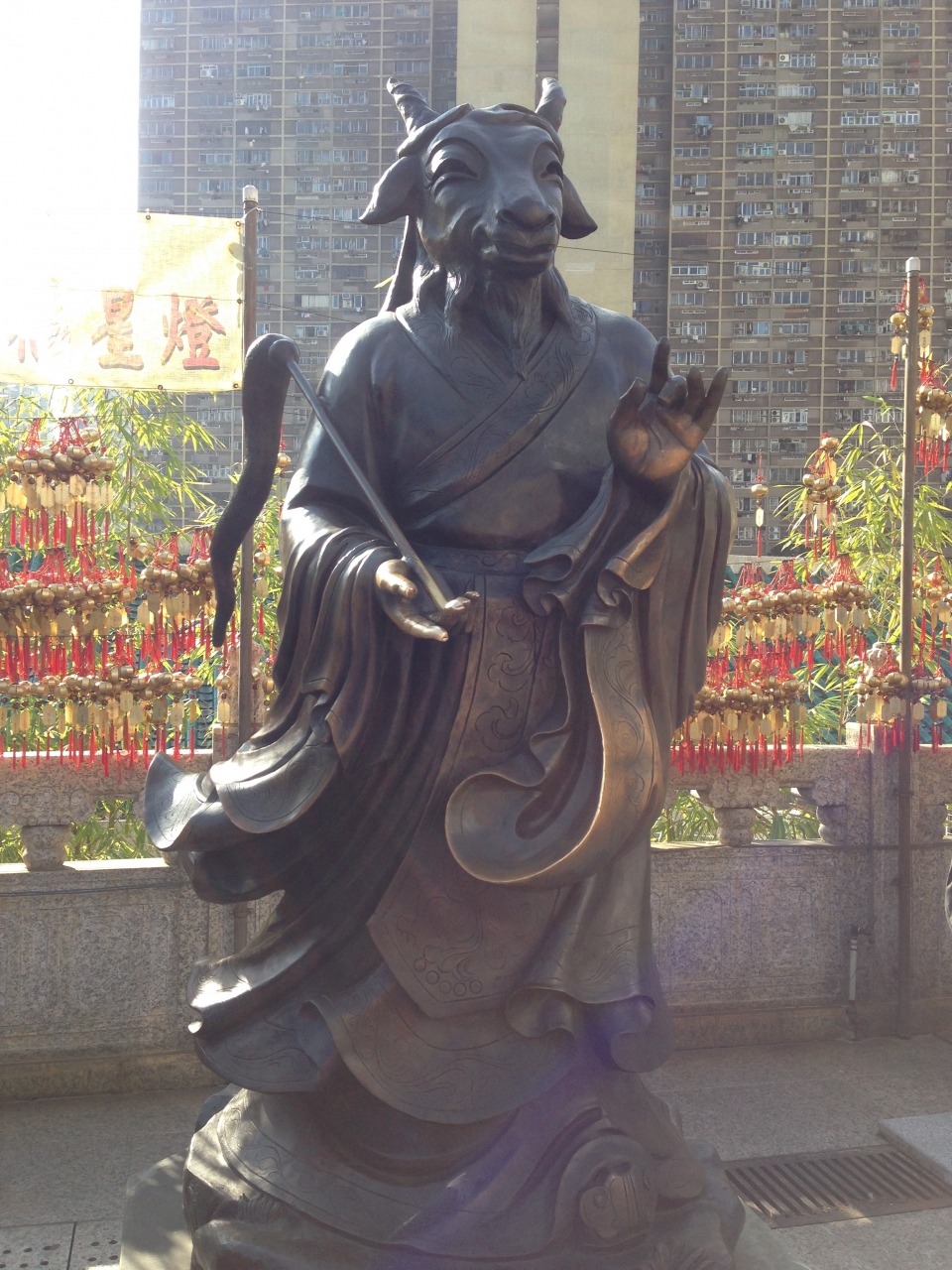 お寺全体が赤黄、黄金色で色付けされカラフルなお寺です。中国や台湾からの団体旅行も訪れていましたが、地元の人達にとっても身近にある大事なお寺なんだという印象です。大きな干支の像が立ち並んでいる広場が有って、各自自分の干支と一緒に写真を撮っていたました。
