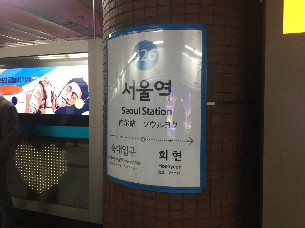 A’REXで仁川国際空港からソウル駅に移動して地下鉄4号線で明洞まで移動するのに利用しまさした。