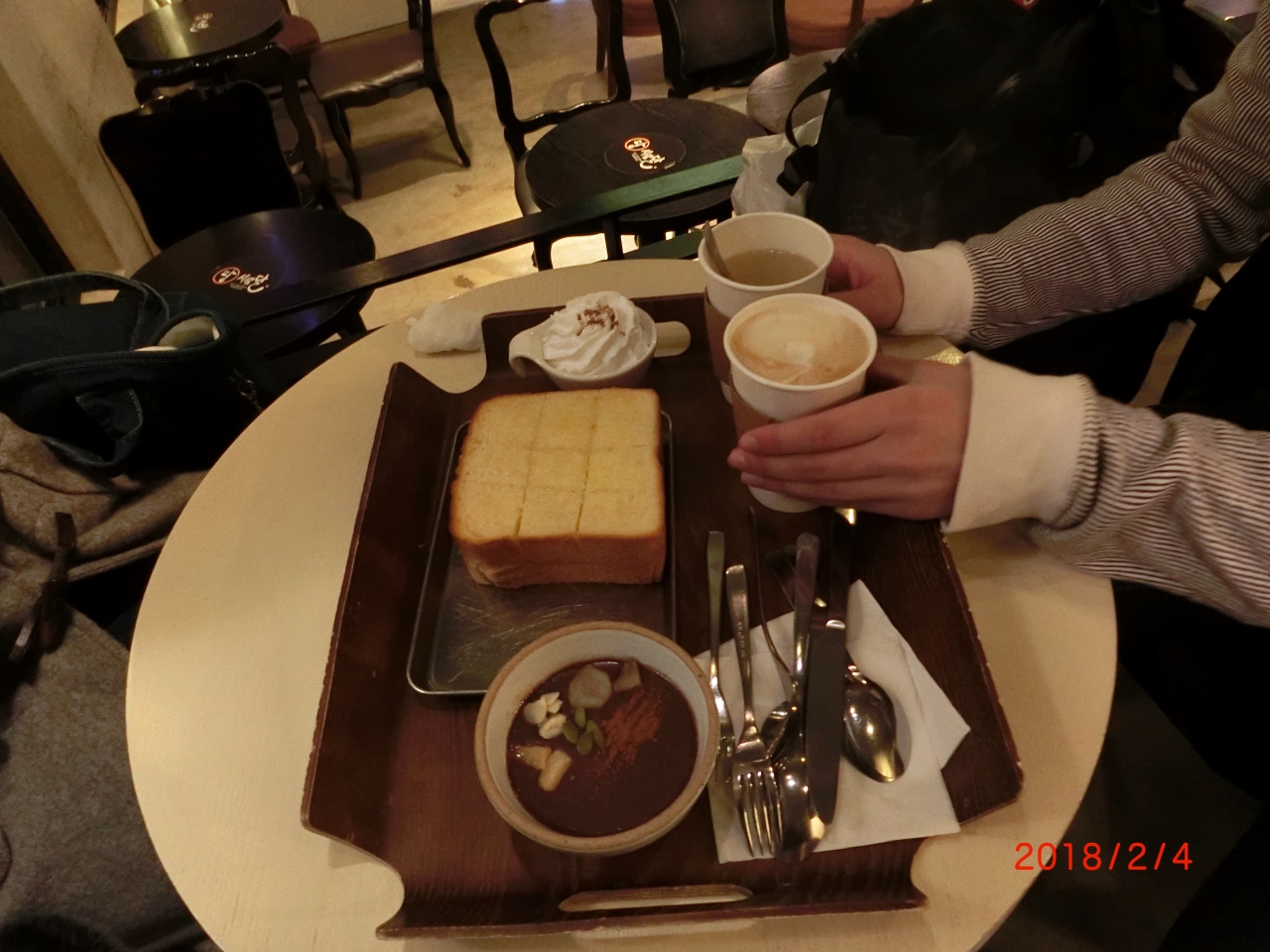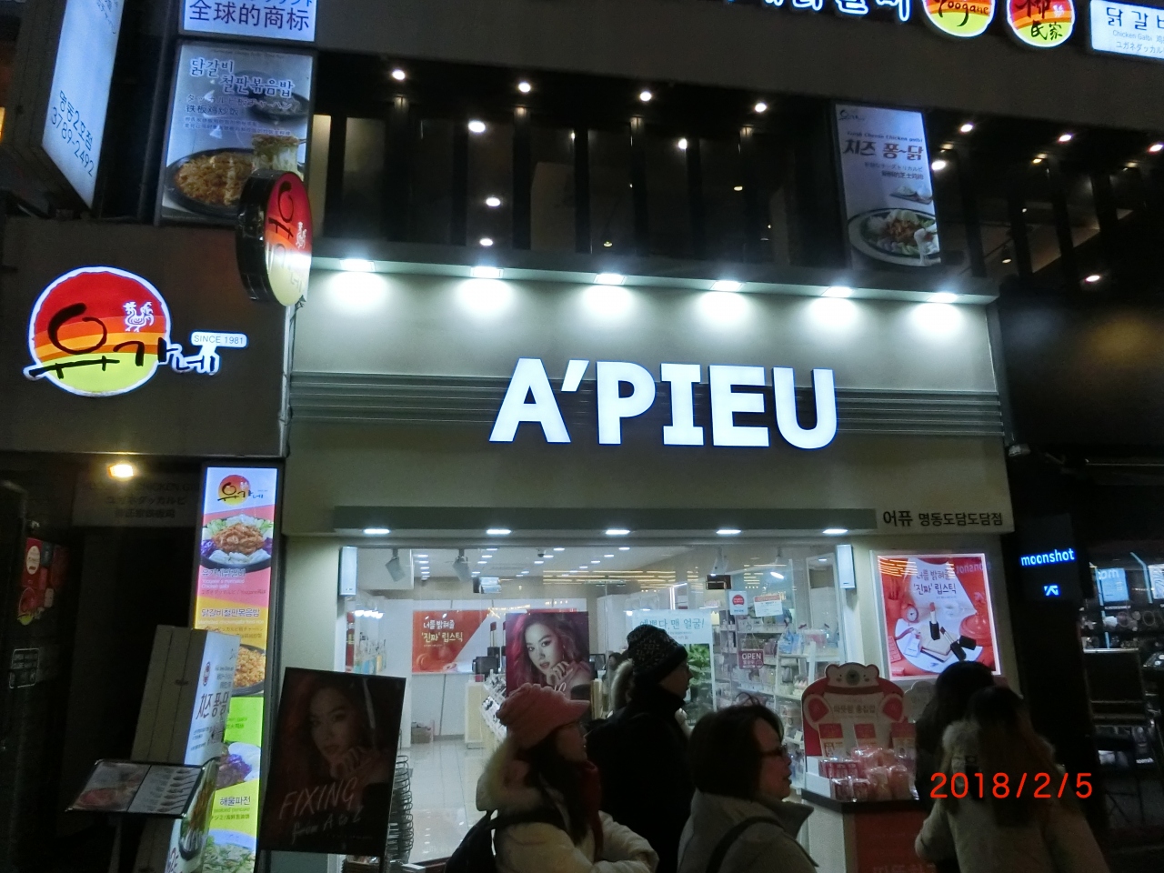 口コミで明洞のA`PIEUで小豆かけ氷を食べたというので