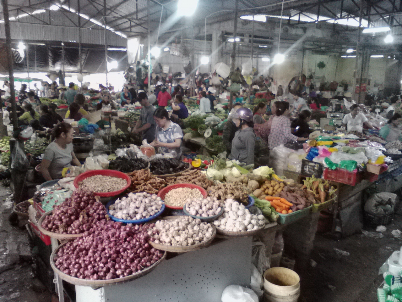 小じんまりしたローカルな市場。小さいながらも肉、魚、野菜、果物などの生鮮品、衣類、日用品、飲食コーナーと一通りの店が揃っています。正面入口から入ってみて下さい。入口にはいきなり「EXIT」の表示で一発かまされ、内部に入るとまるで洞窟、ゲームに出てくるダンジョンのような世界が広がっています。小さな市場なので迷うことはありません。思う存分探検して下さい。