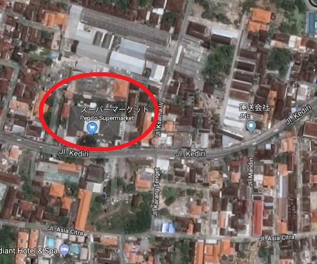 ぺピートは、空港の北側の目抜き通りであるケディリ通り沿いにある大きなスーパーマーケットです。
