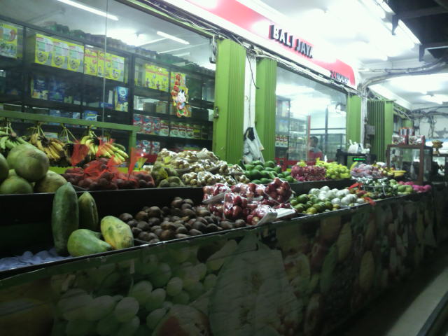 野菜、果物、豆類、肉類といろんな商品が並べられていました。
