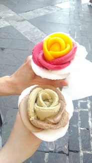 コーンを頼むと薔薇の形に盛り付けてもらえます。