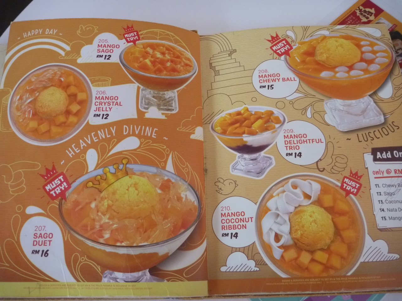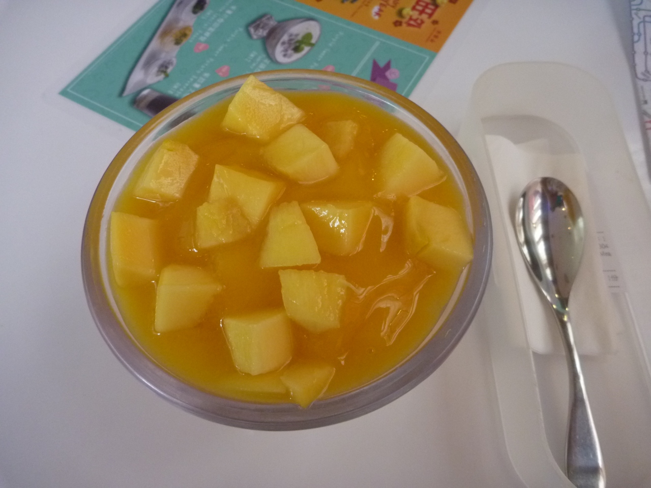 香港のお店にも入ったことがありますが、マンゴーのデザートの種類が多く、こちらも同じおいしさでした。最上階にあり、パビリオンの吹き抜けのニューイヤーデコレーションがよく見えましたが、足元が透けて見えてちょっと怖かったです。