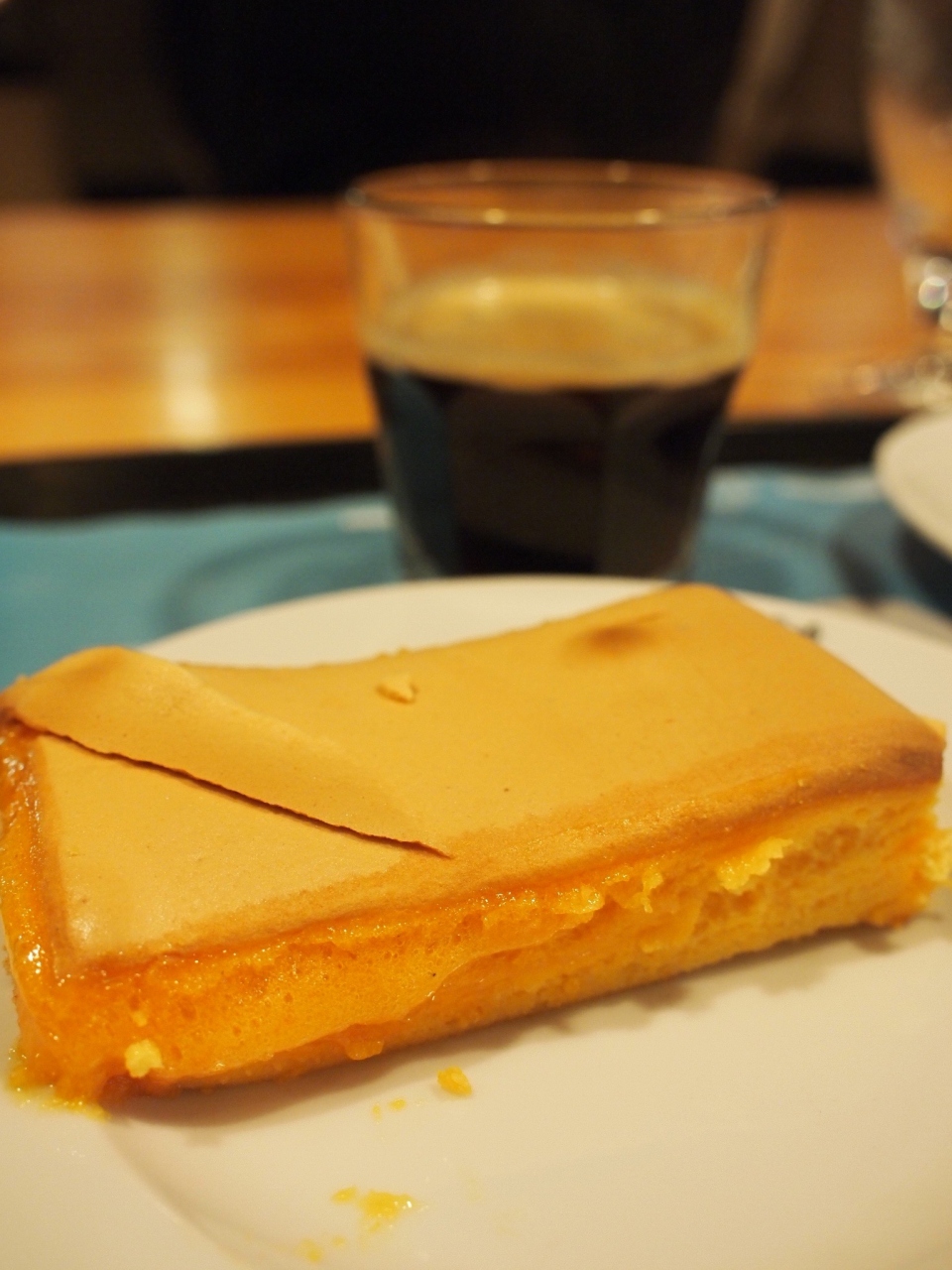 夜に行った時はタコのリゾット、鴨とポテトの卵和えをそれぞれ別のお店で買って食べましたが非常に美味しかった!デザートはまた別の店でカステラの元となった半生カステラを食べましたがこれも美味しかった。